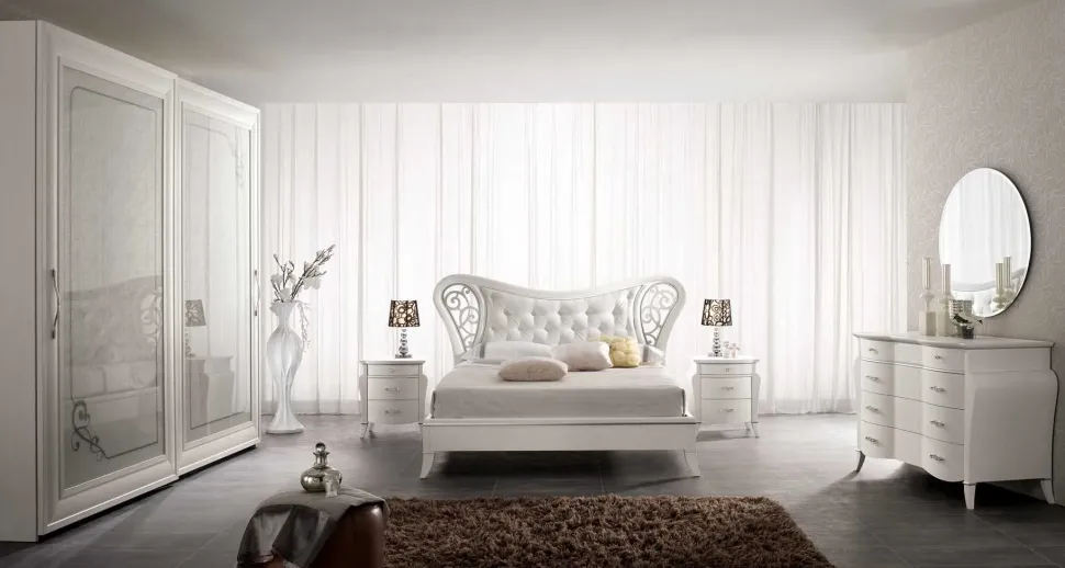 - Tra i materiali pregiati che la marca ha scelto per la sua linea di arredi per la camera da letto, non mancherà per certo il legno con cui questo modello Camera completa luxury frassino bianco è stato realizzato, materiale appropriato per trovare soluzioni alle necessità di praticità ed estetica di ciascuno; design unico, resistenza nel tempo e robustezza strutturale sono garantiti in questa proposta di grande qualità, poiché è realizzata seguendo una peculiare coerenza stilistica.