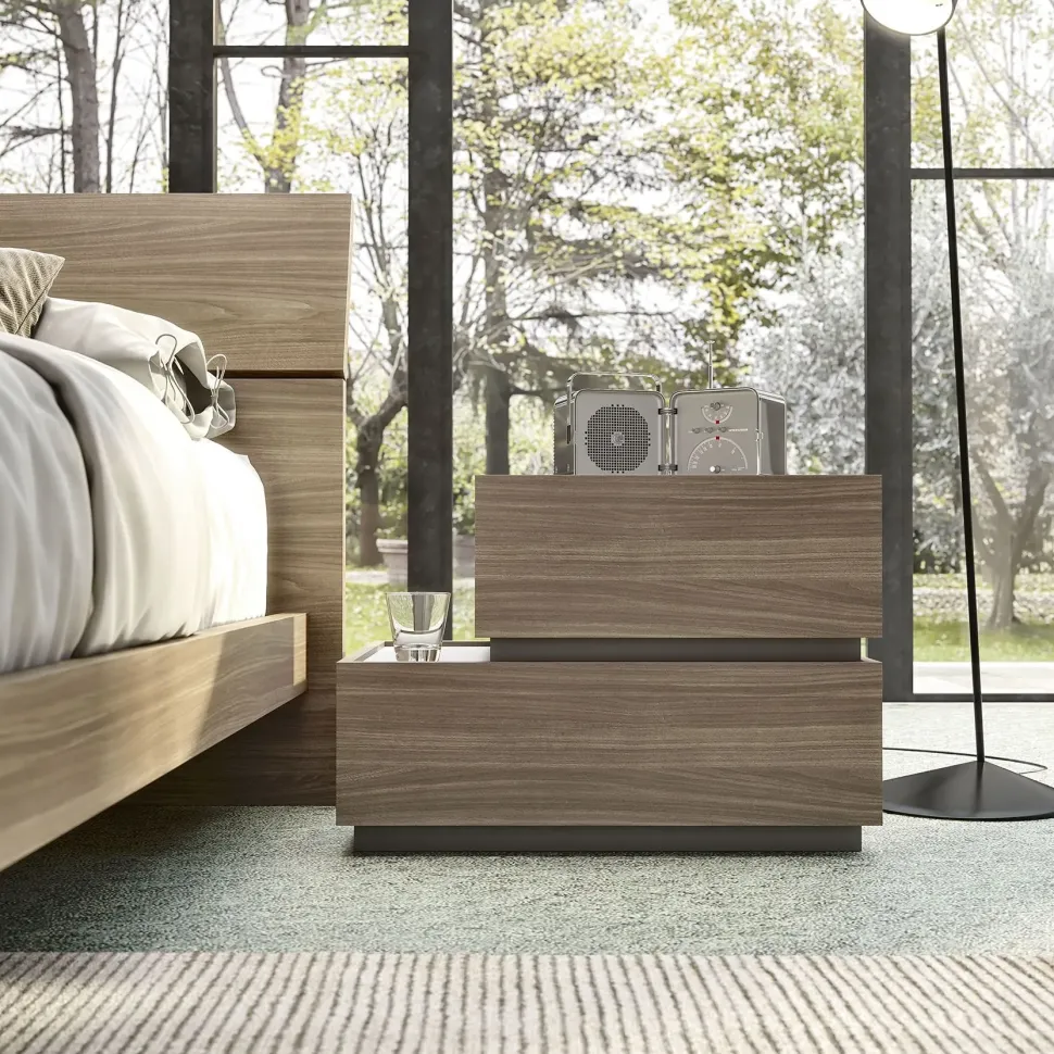Camera matrimoniale completa proposta nelle finiture: Noce naturale e Laccato colore Grey. E’ completa di 1/Composizione-armadio con librerie intermedie(cm.307,4 larghezza x cm.60 profondità x cm.254 altezza. 1/Letto-matrimoniale mod.Fiji completo di rete a doghe(cm.180 larghezza x cm.217 profondità x cm.94 altezza). 1/Comodino ad 1 cassetto(cm.67 largh. x cm.48 prof. x cm.25 altezza). 1/Comodino con 2 elementi sovrapposti(cm.67+cm.50 larghezza)x cm.48 profondità x cm.50 altezza. 1/Cassettone con elementi-sovrapponibili composto da 2 elementi da cm.110xcm.48xcm.25h.+1/elemento con cassetto da cm.50 larghezza x cm.48 prof. x cm.25h.). E’ un modello di camera matrimoniale disponibile nelle diverse finiture e colori di laccatura a richiesta. Viene prodotto con materiali di alta qualità con l’impiego esclusivo di pannelli ecologici classe E1 e con vernici ecologiche a base d’acqua. La composizione completa come foto viene proposta nella soluzione in promo con lo sconto del 45%. Per qualsiasi informazione potete contattarci attraverso il nostro indirizzo di posta elettronica.