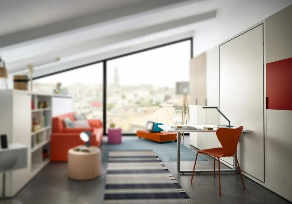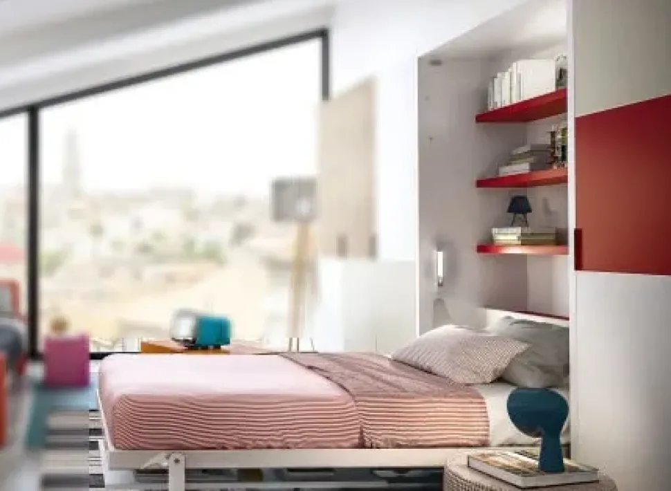 - L’ambiente dei piccoli occorre che sia ammobiliato tale da assicurare una serena vita di tutti i giorni ai più piccoli, in un ampio spazio che dia loro la totale libertà di giocare e rilassarsi sempre secondo le loro passioni: il brand propone una scelta praticamente infinita di tipologie di camerette per le più molteplici esigenze, da quelle a terra a quelle salvaspazio, da quelle per bebè a quelle per ragazzi; il modello Altea book 120 workqui presente fa parte della collezione di camerette con letti a scomparsa.