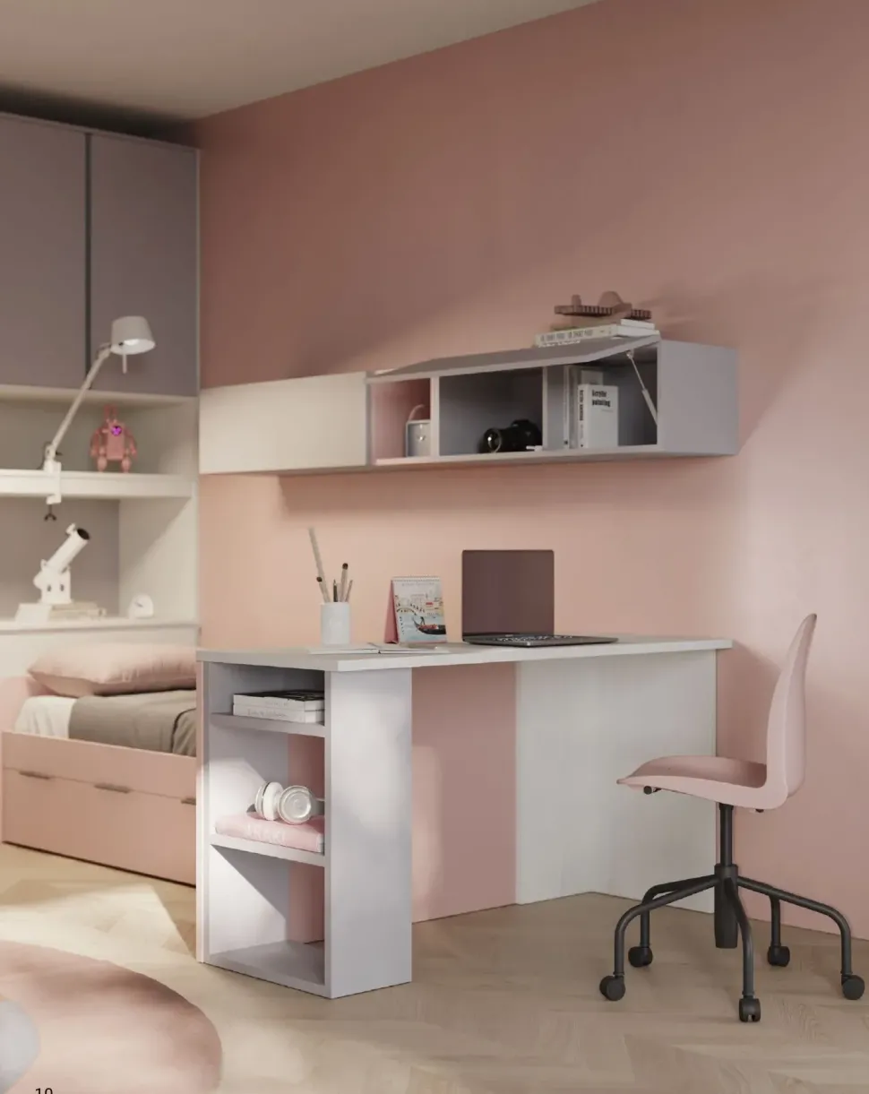Cameretta completa a schema libero, funzionale e dal design moderno, ideale per la stanza dei tuoi figli. La camera dispone di letto singolo con cassettone inferiore spazioso in finitura Cipria e maniglia Lavagna. Armadio ad anta battente con vano contenitore dietro letto in frassino Sbiancato, ripiani laterali e spaziosi vani a vista. Ai piedi del letto troviamo una scrivania dotata di piano di lavoro spazioso, ideale per studio, lavoro o attività creative. Presenti inoltre pensili spaziosi con anta a ribalta in finitura grigio Spatolato. La camera viene presentata in finiture Frassino Sbiancato, Cipria e Grigio Spatolato con le maniglie tinta Lavagna. La camera ha una dimensione totale in lunghezza di 311cm, profondità 268cm e altezza 258cm. Rete inclusa. Escluso invece il materasso. Personalizzazione delle finiture senza variazione di prezzo. Consegna compresa nel prezzo, 30-40 giorni lavorativi. L’offerta per questa cameretta è di euro 3740,00. Per maggiori informazioni contattaci via mail o passa a trovarci nel nostro showroom.
