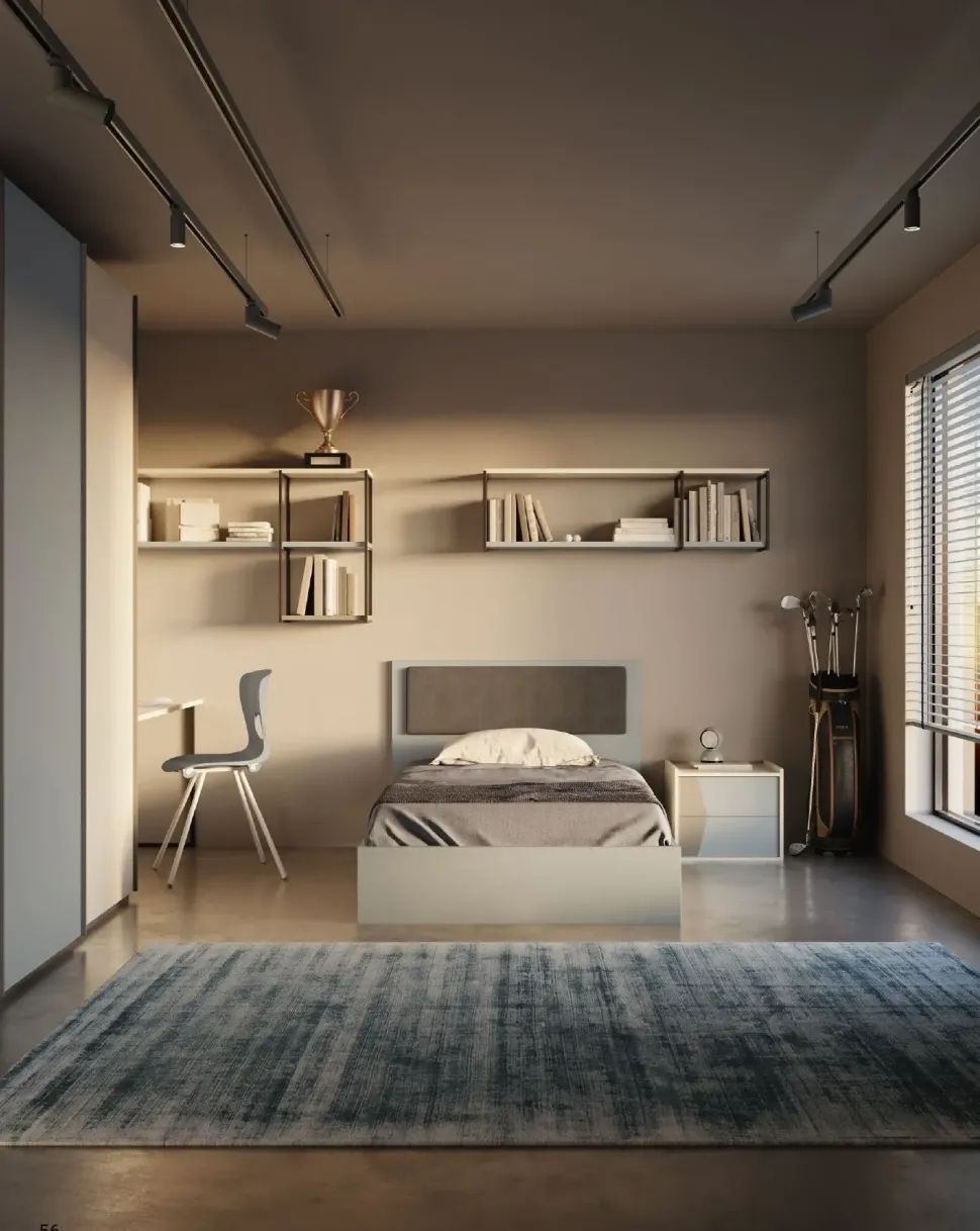 Questa cameretta si distingue per il suo design geometrico e moderno, caratterizzato da linee pulite e una combinazione di materiali che conferiscono un aspetto contemporaneo e stilisticamente audace. Ogni elemento dell’arredo è progettato per unire funzionalità ed estetica, offrendo un ambiente elegante, organizzato e allo stesso tempo versatile. Il letto è perfettamente integrato nello spazio, con una struttura che enfatizza l’aspetto geometrico. La base del letto aggiunge una sensazione di solidità e modernità, mentre la testiera in materiale coordinato completa il look, mantenendo un’armonia visiva con gli altri arredi. Il comò a due cassetti, garantisce un’ottima organizzazione senza rinunciare a uno stile raffinato. La scrivania con una superficie ampia e funzionale, supportata da una struttura in metallo, offre spazio sufficiente per computer, libri e materiali di lavoro. La struttura in metallo aggiunge un tocco industrial, creando un contrasto elegante con il resto della stanza. I pensili, anch’essi con una struttura in metallo, sono dotati di ripiani regolabili che permettono di personalizzare lo spazio di archiviazione in base alle proprie esigenze. Il grande armadio, con ante scorrevoli, offre all’interno una vasta capacità con ripiani, appendiabiti e vano a vista, il tutto perfettamente organizzato per garantire facilità d’uso e accessibilità. La personalizzazione delle finiture è compresa nel prezzo. Spedizione in tutta Italia senza costi aggiuntivi, 30-40 giorni lavorativi. L’offerta per la cameretta è di euro 3.480. Approfitta dello sconto e passa a trovarci nel nostro showroom oppure contattaci via mail per maggiori informazioni o preventivi.
