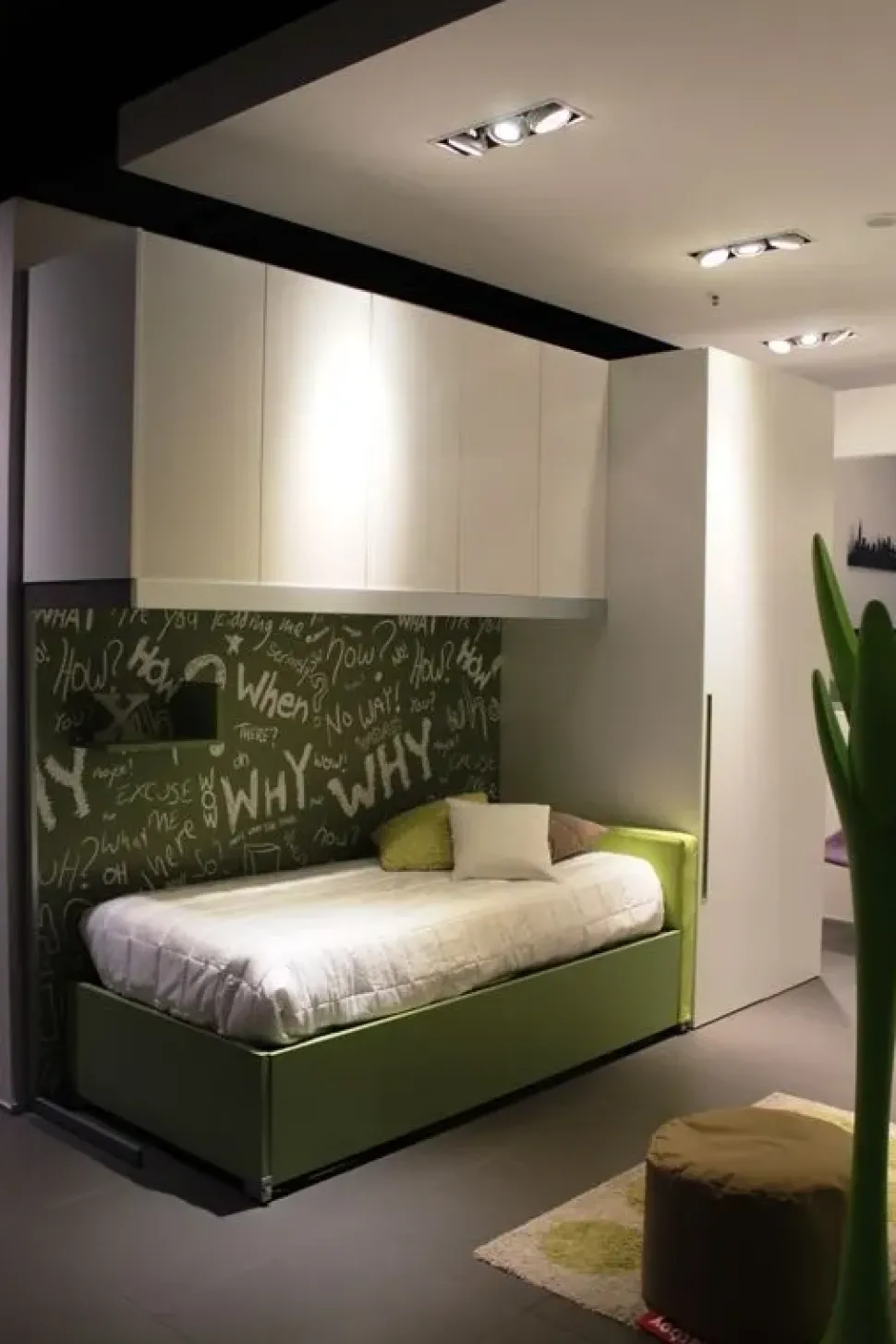 L’accostamento dei colori Bianco-Verde rende la cameretta un luogo ideale e rilassante sia per bambini che bambine.