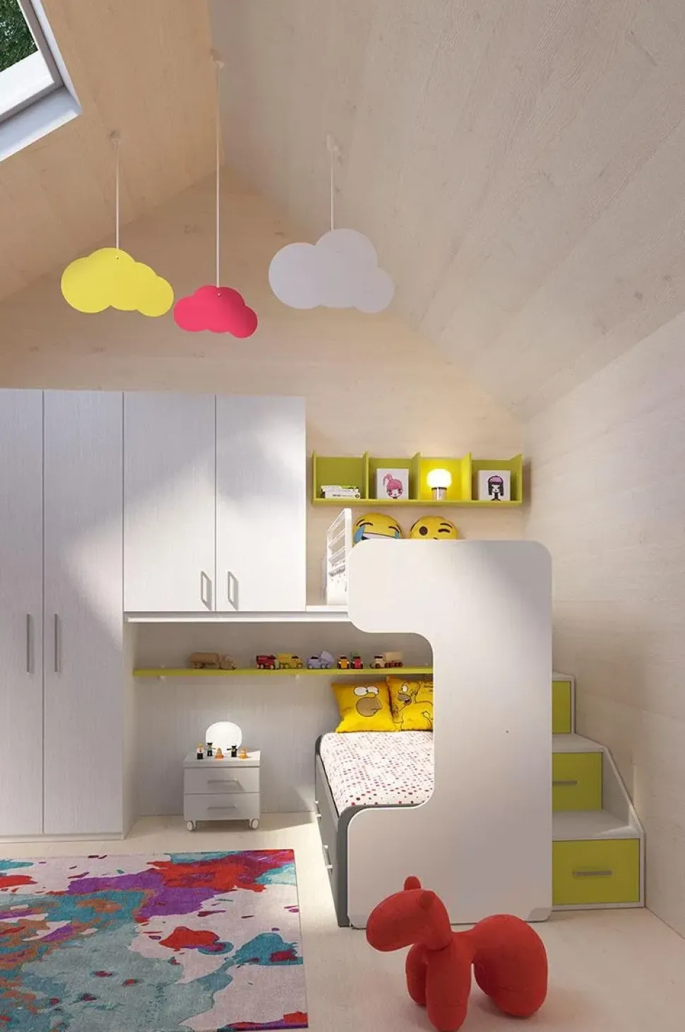 Per ricreare le atmosfere ideali per l’ambiente dei piccoli, opta per camerette dalle tonalità più vivaci e dalle forme morbide, cosicché l’ambiente possa instillare energia e serenità; il marchio ha optato per un materiale tanto pregiato quanto resistente per questa cameretta Composizione 18 ima mobili, ossia il laminato materico, tale da valorizzare la resa estetica della stanza completandone pure le doti di funzionalità.