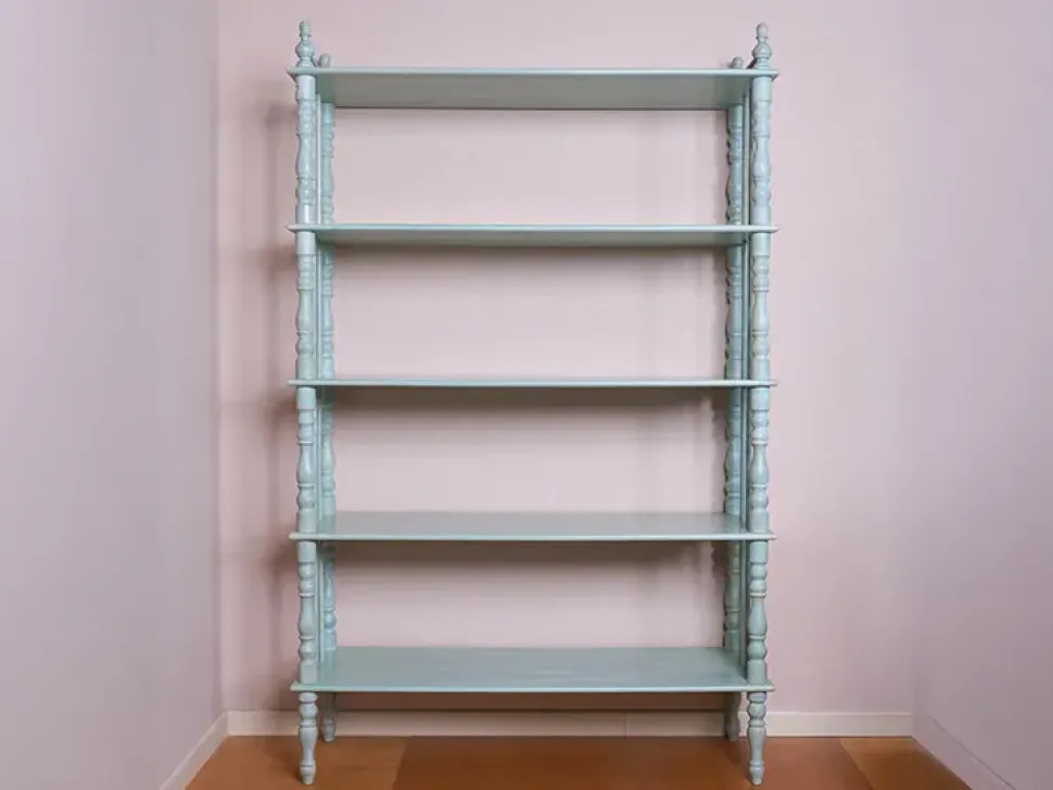 - Libreria in massello di abete finit. Verde decapè bianco con 5 ripiani —- Dimensioni cm L 100 x P 35 x h 157