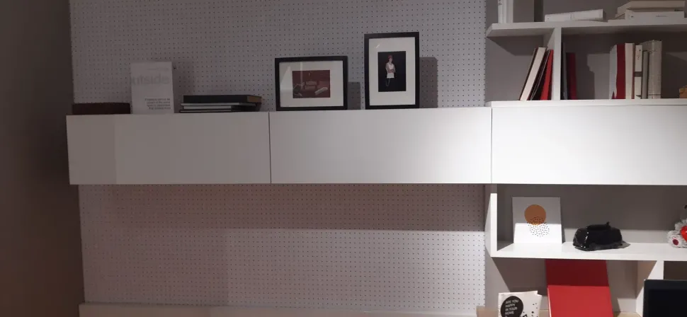 Comprende: un ampio armadio a 4 ante con cassettiera interna; un letto X-Bed con cassettone contenitore sottostante; 3 pensili con anta vasistas fissati al muro; una crivania molto generosa con profondità maggiorata; una parete attrezzata con elementi Snake dotati di ripiani, fianchi divisori e schienale a muro