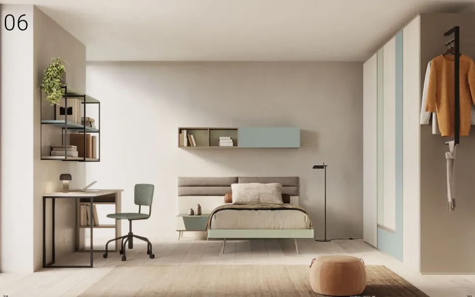 Questa cameretta si distingue per un design moderno e funzionale, pensato per ottimizzare lo spazio senza rinunciare all’estetica. Il letto, con una struttura elegante, si integra con il resto dell’arredo, creando un ambiente armonioso. Il comò caratterizzato da piedini in legno inclinati, aggiunge un tocco di raffinatezza alla stanza, con finiture precise. L’armadio ad ante battenti è progettato per offrire una grande capacità di contenimento. L’interno è organizzato in modo funzionale con ripiani e appendiabiti per una disposizione ottimale degli indumenti. La scrivania è dotata di una superficie ampia e funzionale, ideale per computer, libri e materiale scolastico o di lavoro. Sopra la scrivania, i pensili con ripiani e supporti in metallo offrono ulteriori soluzioni di stoccaggio. Questi pensili sono dotati di ripiani facilmente regolabili per adattarsi alle diverse esigenze, mentre i supporti in metallo conferiscono un aspetto industrial e moderno, mantenendo un’ottima stabilità e resistenza. La personalizzazione delle finiture è compresa nel prezzo. Spedizione in tutta Italia senza costi aggiuntivi, 3040 giorni lavorativi. L’offerta per la cameretta è di euro 4.000. Approfitta dello sconto e passa a trovarci nel nostro showroom oppure contattaci via mail per maggiori informazioni o preventivi.
