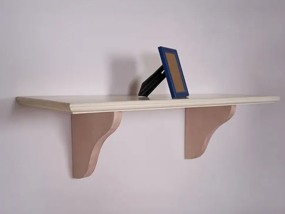 Mensola in legno di abete laccato bianco con castagnole legno naturale — Dimensioni mensola piccola cm L 80 x P 27 x h 23;