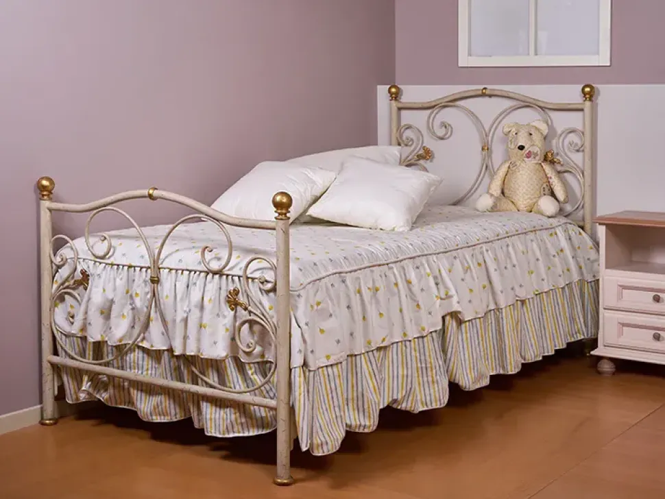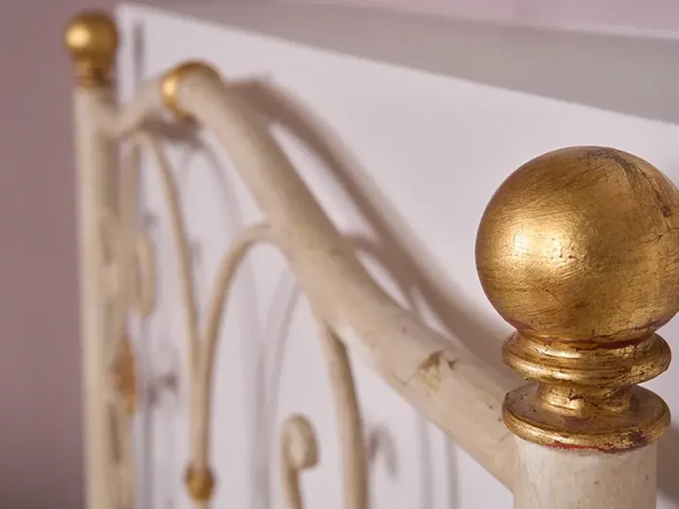 - Lettino in ferro battuto finitura bianco antico con particolari oro predisposto x rete cm 90 x 190 — Dimensioni letto cm: L 100 x P 207 x H 115