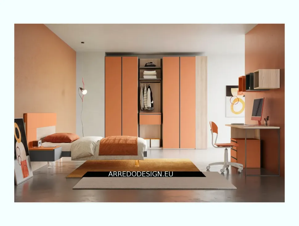 Per creare le atmosfere ideali per lo spazio junior, scegli camerette dalle tonalità più intense e dalle linee sinuose, in modo che l’ambiente possa instillare energia e serenità; il brand ha selezionato un materiale tanto pregiato quanto resistente per questa cameretta Smart, ovvero il laminato materico, in modo da impreziosire la resa estetica della stanza completandone anche le qualità pratiche.