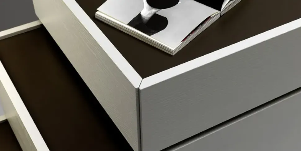 Linee decise e materiali pregiati connotano tutte le cassettiere e i comò Sangiacomo: scopri il modello Cidori componibile in legno qui visibile e completa la tua zona notte.