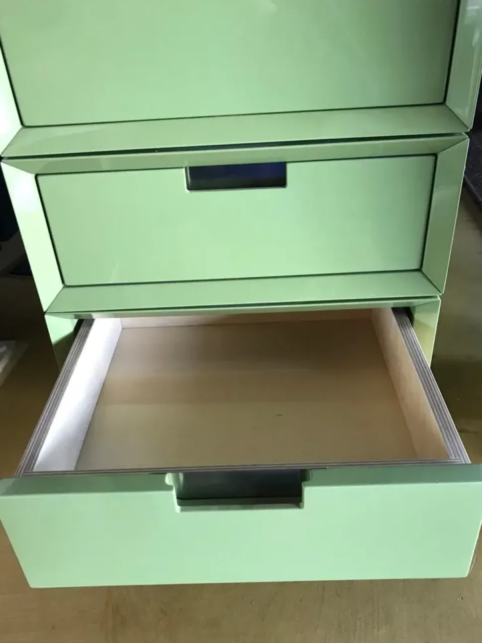 tre cassetti con maniglie in acciaio a scomparsa
