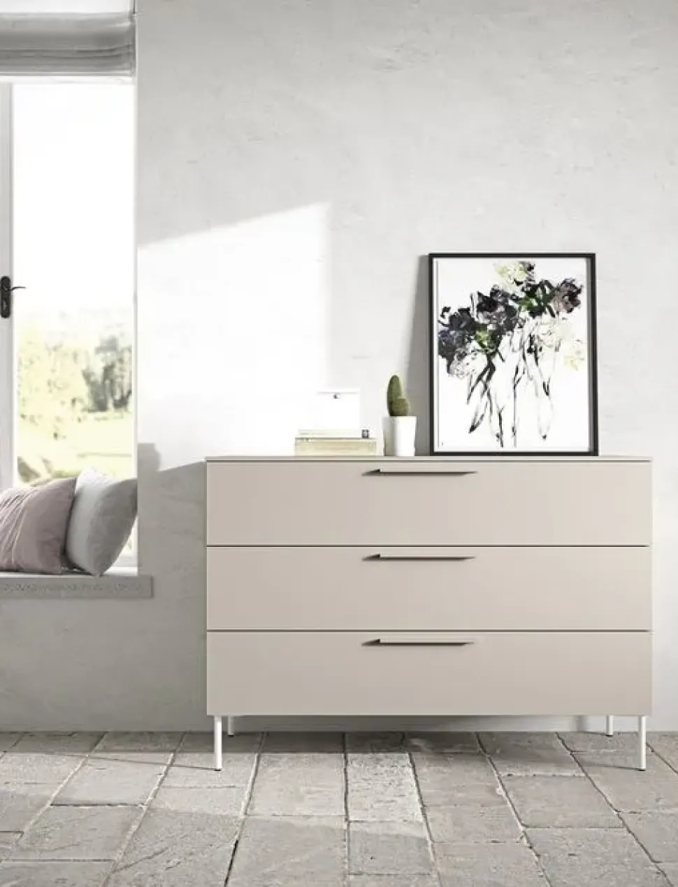 Valuta anche lo stile della cassettiera o del comò che fa al caso tuo: il modello Como grigio con gambe sarà ideale per valorizzare una camera moderna risolvendo diverse problematiche abitative.