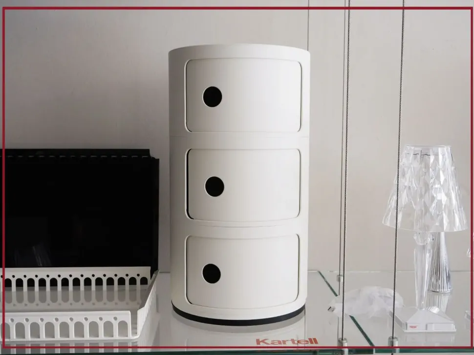 Gli elementi componibili sono stati progettati per rispondere a diverse esigenze d uso e vivere in ogni ambiente della casa. I Componibili nati nel 1967 sono un classico senza tempo dell’arredamento, sono proposti oggi in forma rotonda con diametro da 32 cm. Grazie alle composizioni fisse da due, tre e quattro elementi risultano essere funzionali e pratici per ogni ambiente. Questo modello viene proposto in sei finiture glossy e una finitura silver opaca.