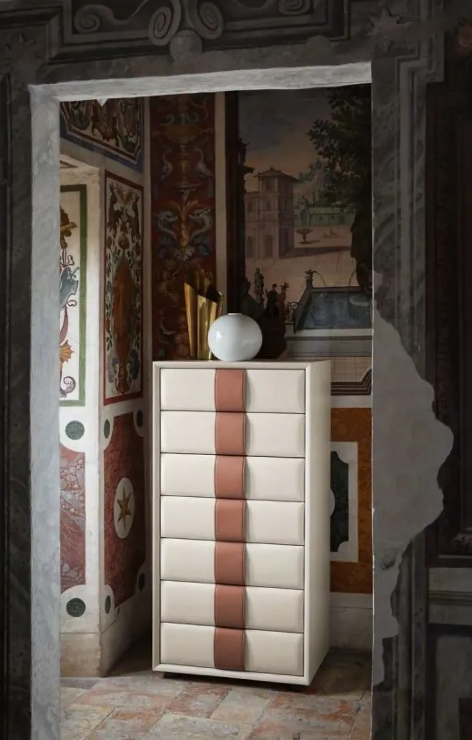 Le cassettiere e i comò a marchio Poltrona Frau come il modello O b i visibile in foto, sono tra i mobili e complementi più essenziali sia dal punto di vista estetico che per quanto riguarda la funzionalità del locale. Questo modello in pelle unisce doti di funzionalità e stile dando vita a un concept d’arredo unico.