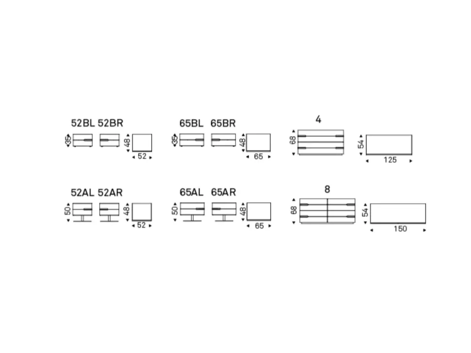 -Comodino in due dimensioni e due altezze a 2 cassetti.