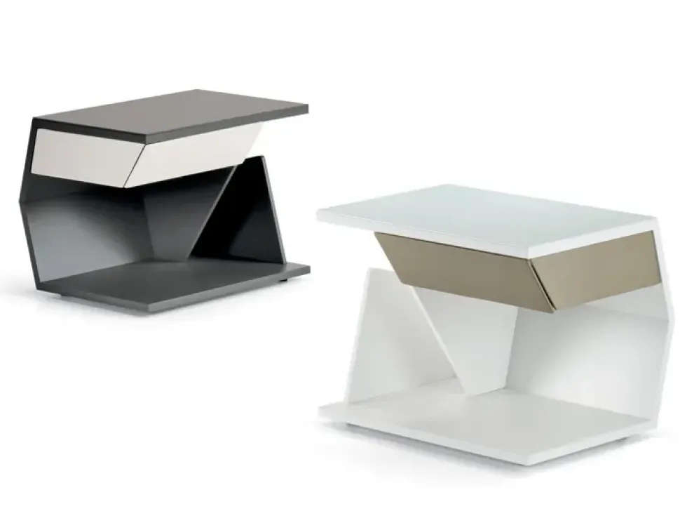 -Comodino con cassetto in legno verniciato goffrato bianco (GF71) o graphite (GF69).