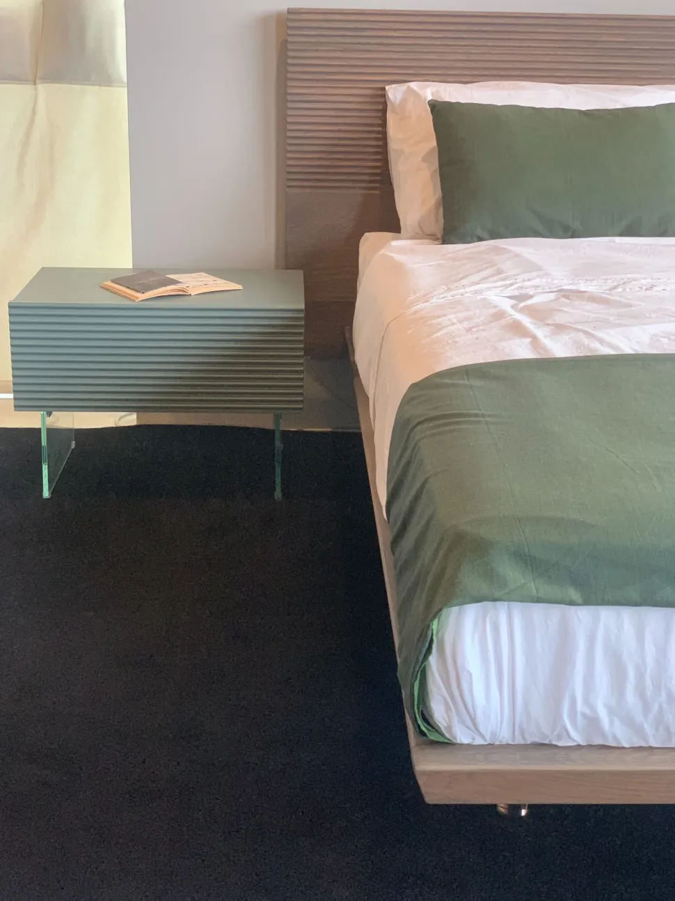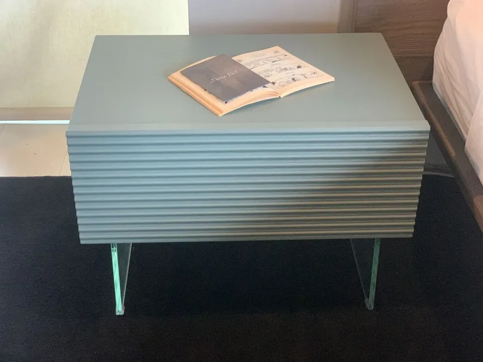 FINITURA: Struttura in Rovere finitura Giada con frontale lavorato. Piedi in vetro