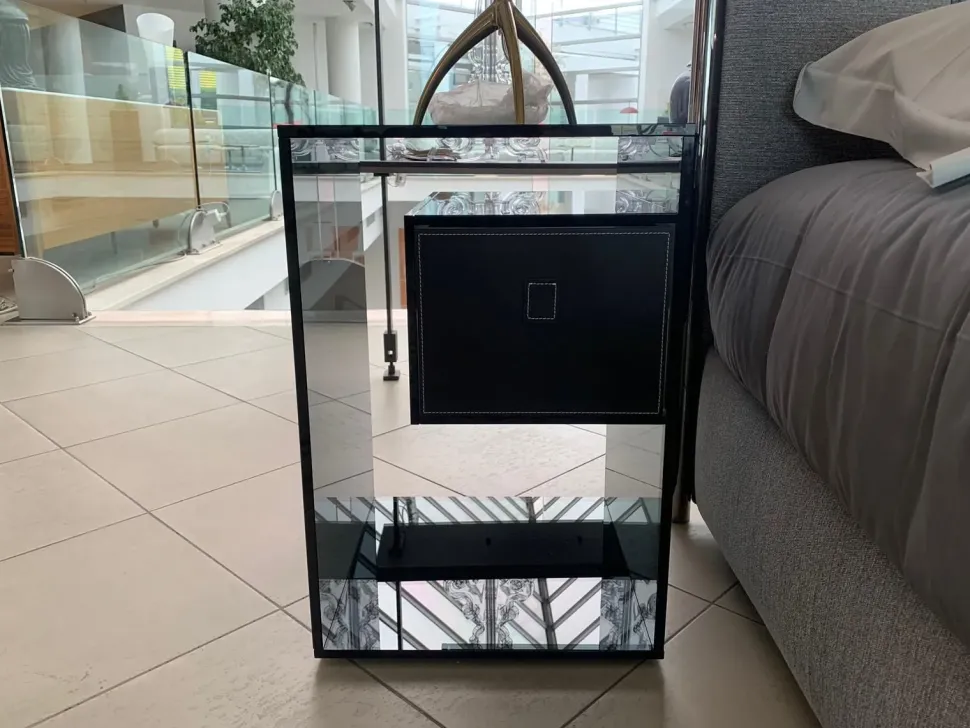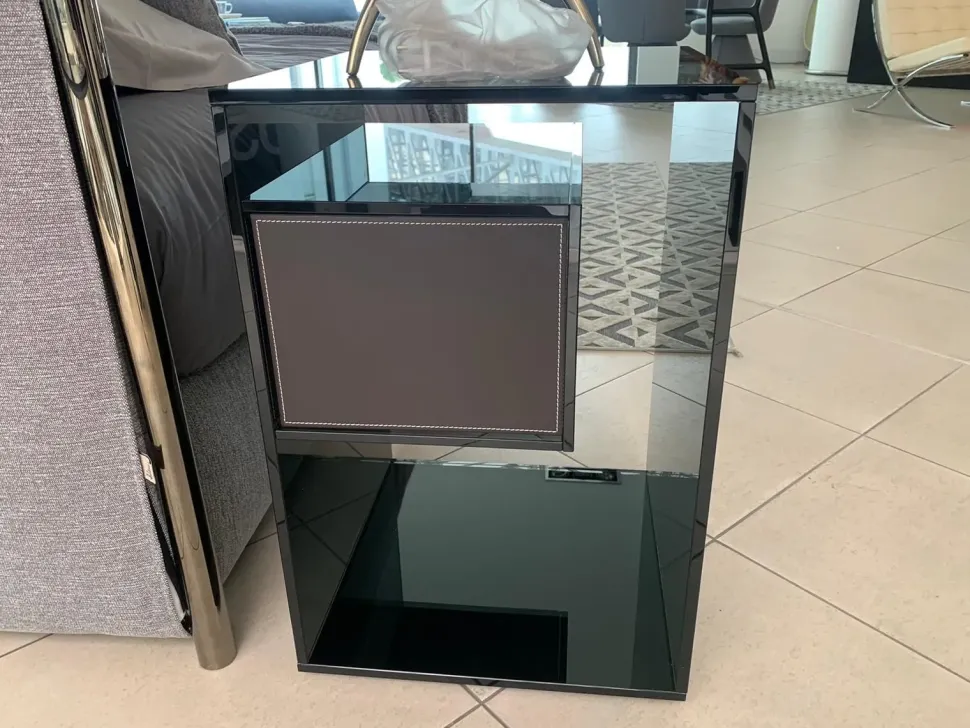 Finitura struttura in vetro fumè e cassettino interno c2 in cuoio col. testa di moro