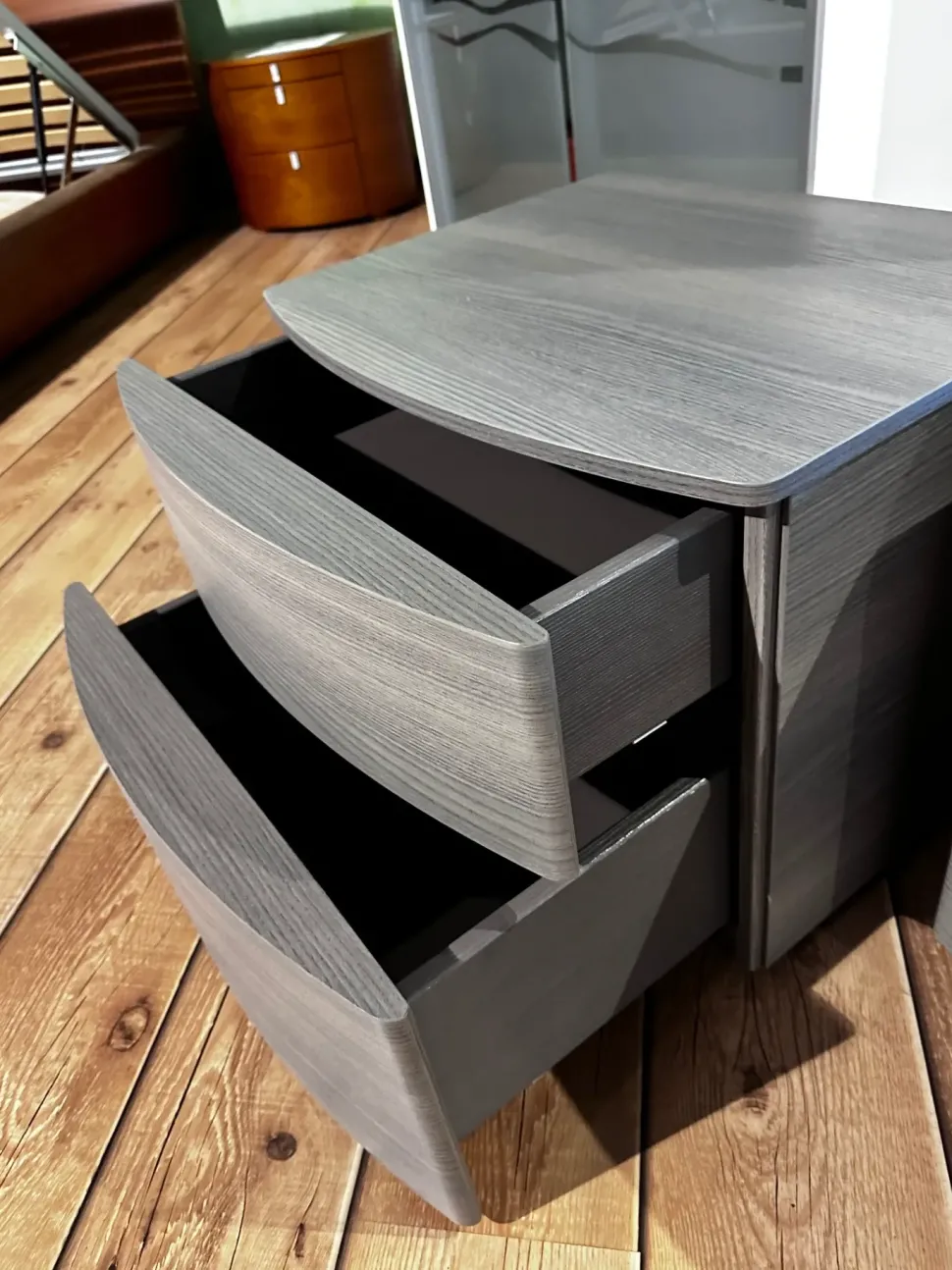 02 Comodini in materico effetto legno colore cenere ditta TOMASELLA frontali cassetti curvi