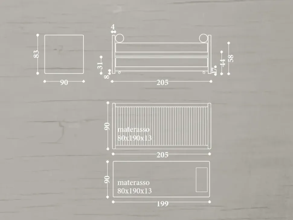 divano e’ completo di 2 materassi a molle ANTI ACARO ANTI MUFFA da 14 cm.