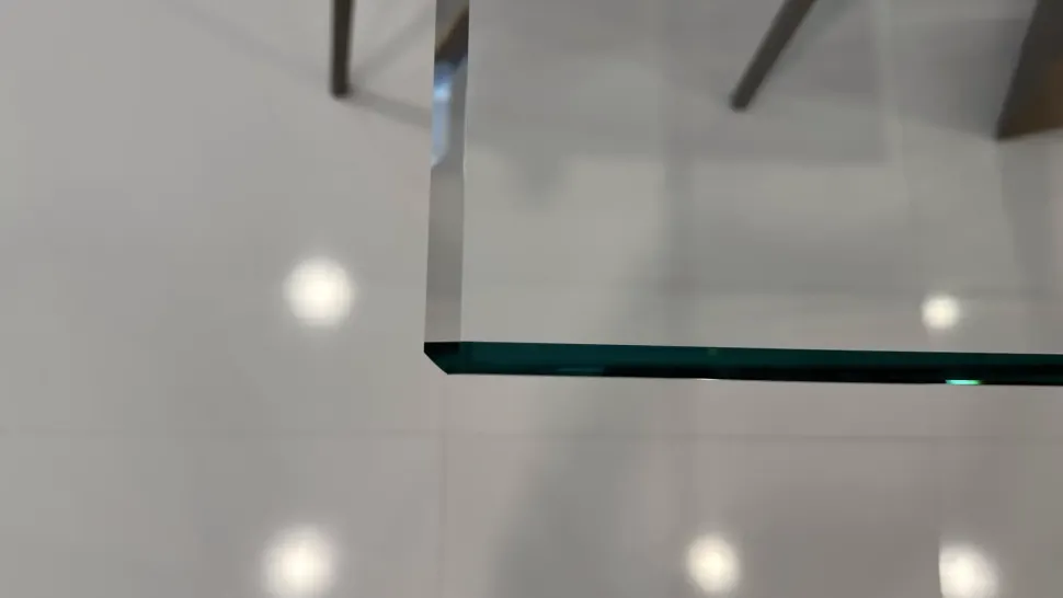 Tavolo Cattelan modello Skorpio con piano in cristallo bisellato.