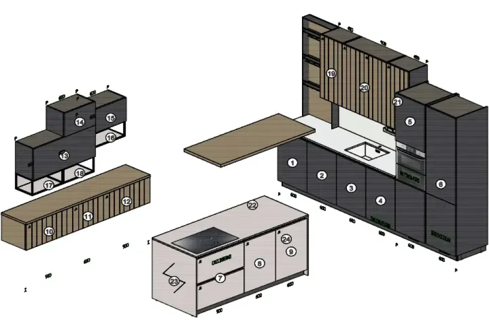 - La cucina modello Metropolis natural qui disponibile non include nessuna cappa: se ne desideri una, potrà essere fornita con maggiorazione rispetto al prezzo qui evidenziato.
