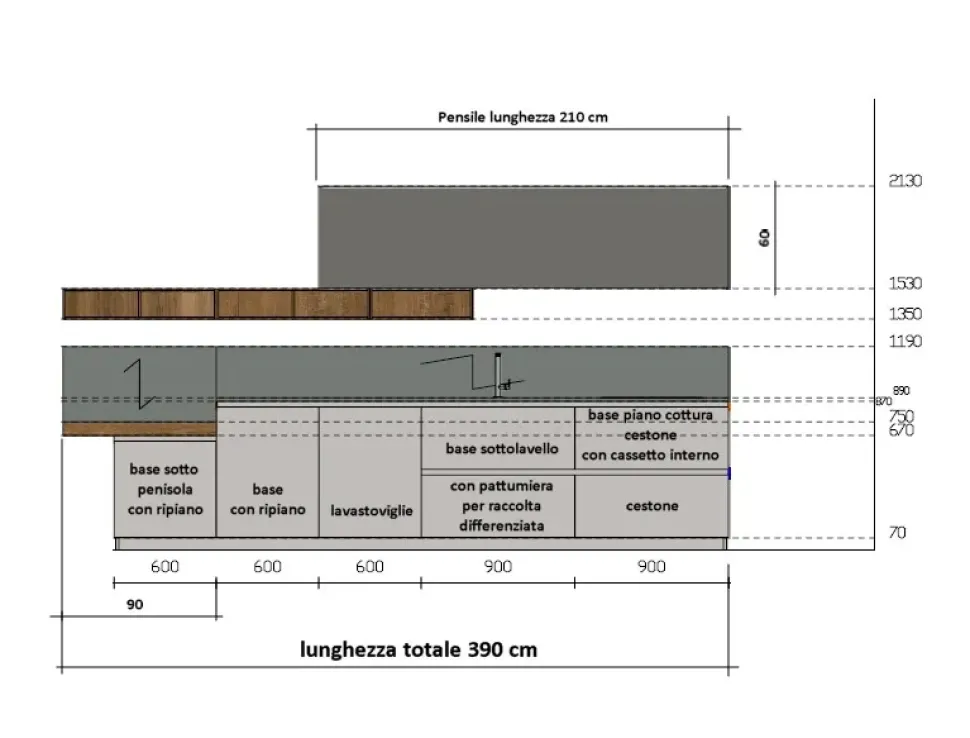 - Disposizione: con penisola