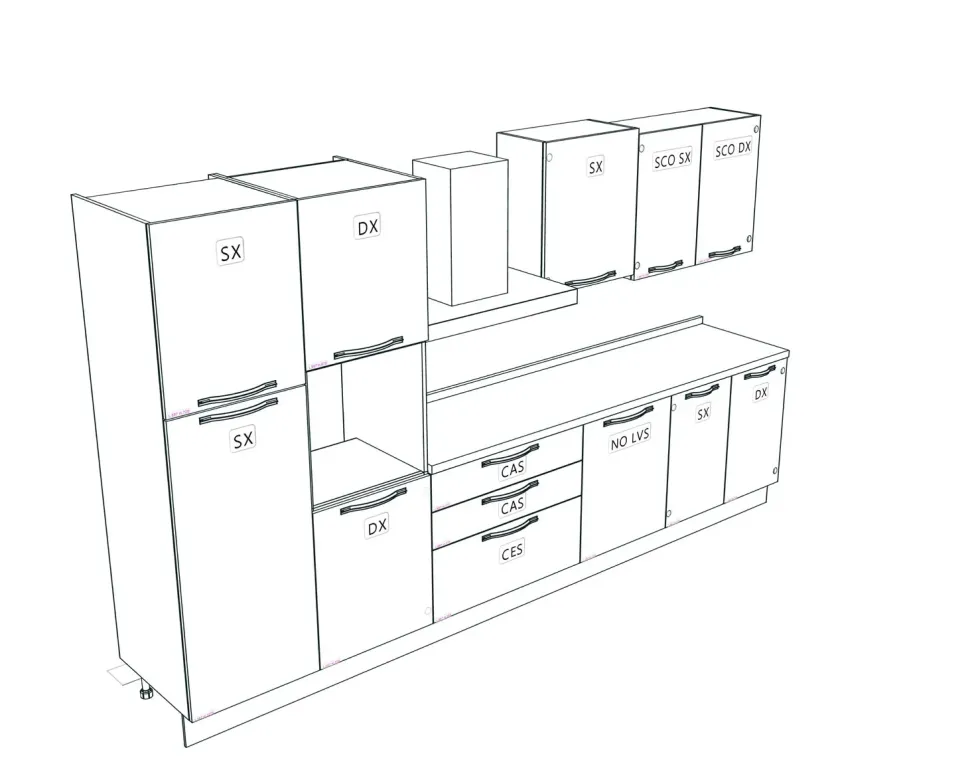 - Nella cucina Greta 10 qui visibile non è incluso nessun microonde, ma potrai ottenerlo previa maggiorazione secondo necessità.