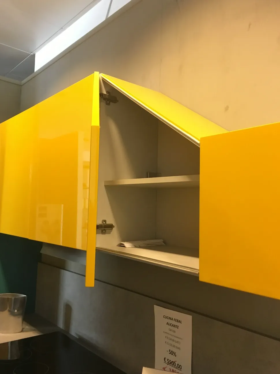 CUCINA COMPONIBILE FEBAL MODELLO ALICANTE COLORI GIALLO MIMOSA Alicante ben si inserisce in stanze moderne di ogni dimensione, in particolare grazie a linee ben studiate e ai materiali di prima scelta con cui è stata costruita. Il brand Febal garantisce composizioni in grado di completare una zona cucina di diverse dimensioni, tra cui anche questo modello Alicante lineare. È importante valutare con attenzione le finiture ideali per gli arredi che vuoi scegliere, difatti Febal ha progettato la cucina Alicante in nobilitato. Per quanto riguarda le spese che il trasporto comporta: trasporto escluso per questa proposta davvero conveniente. Se vuoi garantirti il completo comfort nella vita quotidiana, acquisisce questa cucina completa di frigorifero ad Incasso, capiente e a basso consumo energetico, perfetto per conservare alla perfezione i viveri. Potrai cuocere i piatti come preferisci grazie alla praticità del forno multifunzione, nonchè grazie alle sue differenze. Il modello Alicante non prevede nessun microonde. A rendere del tutto agevole una cucina, dunque anche questa Febal, è il piano cottura a gas, che deve garantirti una cottura uniforme permettendoti di risparmiare tempo e soldi con un bruciatore innovativo e durevole negli anni. Tra gli elettrodomestici, non è inclusa nel prezzo nessuna lavastoviglie. Il lavello, in una zona cucina, deve essere realizzato con materiali di prima scelta per garantirti lucentezza e resistenza negli anni, infatti quello inserito nel modello Alicante è un lavello inox. La zona cucina è soggetta all’azione di vapore e odori, in particolare quando si vogliono cuocere piatti complessi, difatti Alicante prevede una cappa a incasso. Sarà semplice ottenere la cucina dei tuoi desideri con questa soluzione Febal: è perfino completa di un rubinetto di ottima fattura con miscelatore, perfetto per garantirti un flusso d’acqua sempre uniforme. Nel prezzo è incluso un top cucina in laminato perfetto per perdurare durante anni di uso prolungato come banco di lavoro e mantenere inviolate negli anni le doti estetiche che completano il mood dell’ambiente.