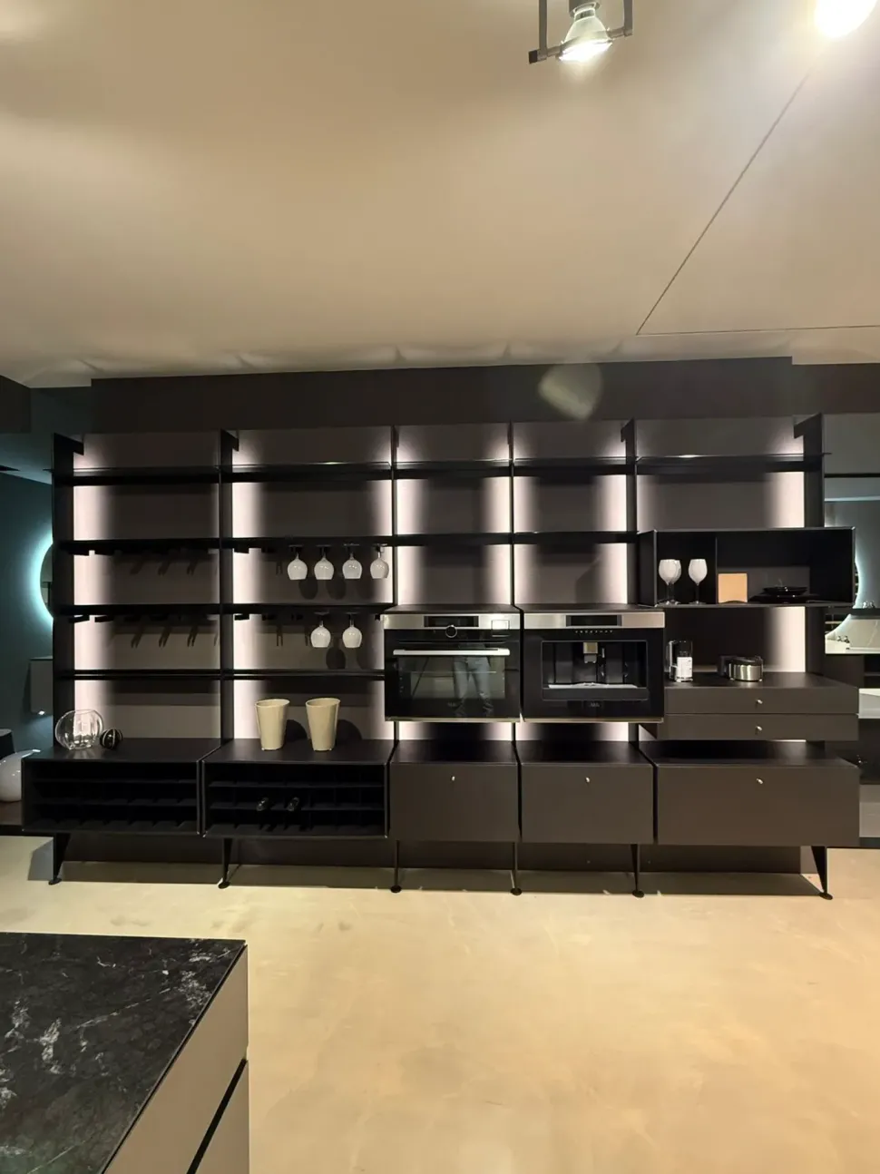 The 50’s reinterpreta con eleganza i sistemi di librerie e contenimento degli anni cinquanta, adattandoli alle esigenze moderne. Questo sistema si distingue per la sua versatilità, capace di integrarsi armoniosamente in diversi ambienti della casa, fungendo da elemento di connessione tra spazi. Nella versione per la cucina, The 50’s offre soluzioni intelligenti per l’inserimento di elettrodomestici come forni e cantinette, oltre a vani dedicati a bottiglie e bicchieri.