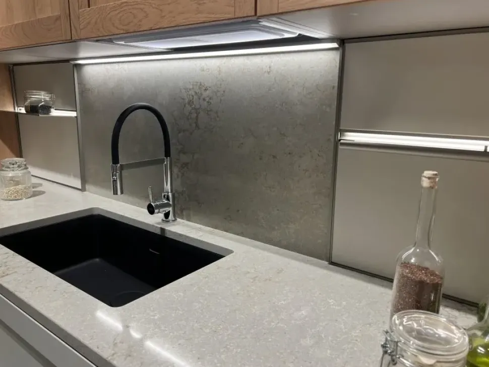 - È davvero peculiare il top cucina in quarzo incluso nell’offerta Outlet, ottimo mix tra le doti di praticità e quelle di design: saprà resistere dopo anni al prolungato utilizzo, pur restando valido altresì esteticamente.