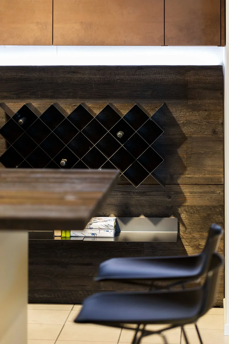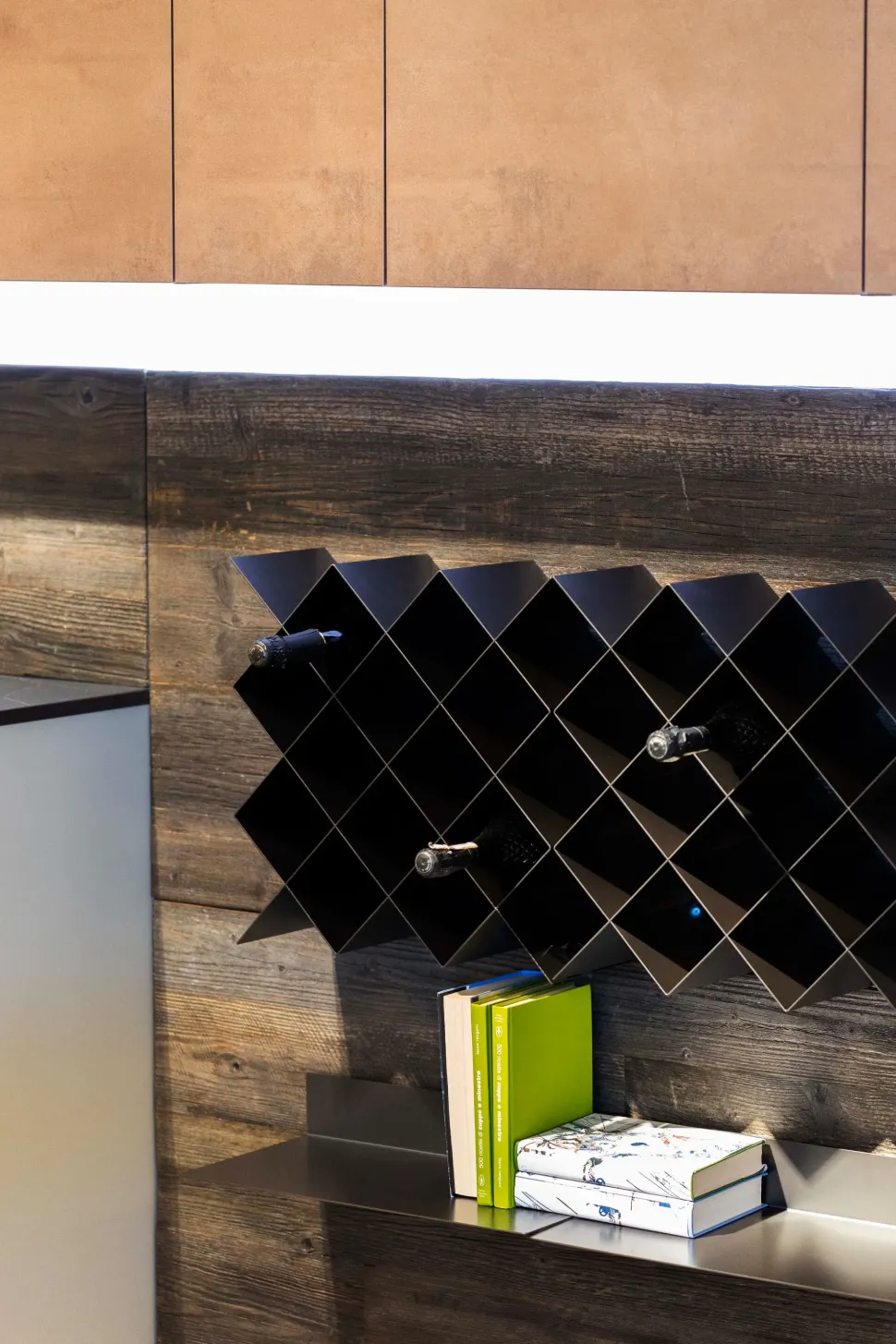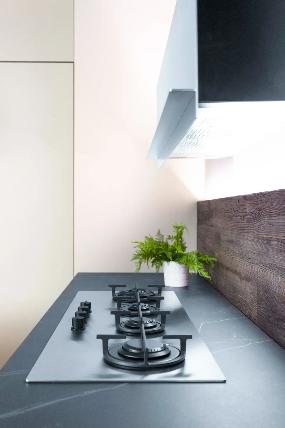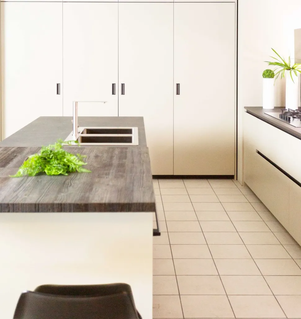 - Con il fine di completare il mood dell’ambiente, gioca un ruolo di primo piano il top cucina: qui incluso nel prezzo, c’è un piano di lavoro in Dekton pensato per durare nel tempo pur custodendo le sue caratteristiche peculiari.