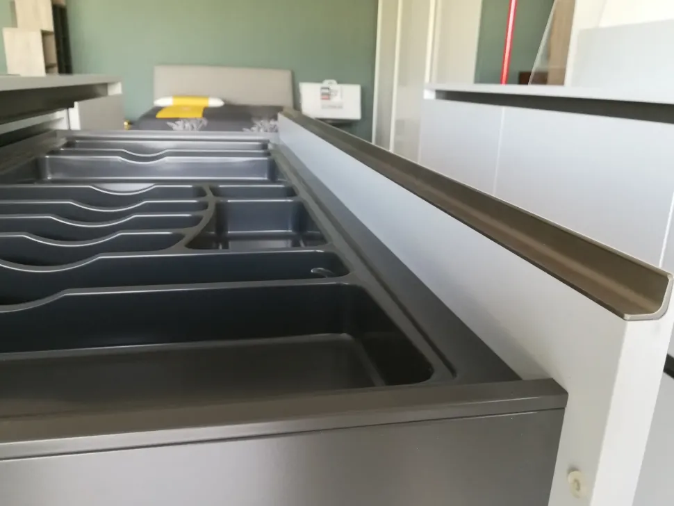 CARATTERISTICHE: L’azienda Dibiesse Cucine offre una qualità di alto livello e un design sempre aggiornato, le cerniere montate sulle ante sono tutte BLUM con rallentatore regolabile, anche i meccanismi dei cassetti sono BLUM della serie Legrabox in finitura antracite con chiusura ammortizzata ed estrazione totale con fondo spesso 2 cm in laminato materico antigraffio.