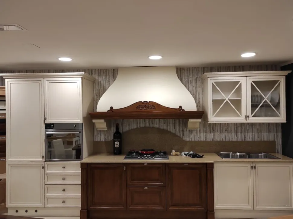 Disponibilità al finanziamento personalizzato. L. 440 H.227 P.60/70 Cucina mod. CANOVA con struttura in listellare di. Se vuoi fare riferimento a definite caratteristiche di stile nella tua zona cucina, prediligi il modello Canova tra le cucine classiche Bamax. Il marchio Bamax garantisce soluzioni arredative in grado di personalizzare una zona cucina di differenti misure, tra cui pure questo modello Canova lineare. Bamax ha scelto di realizzare in legno la cucina Canova ora scontata, materiale durevole negli anni ma anche bello e elegante. Cucina Canova Bamax a prezzo scontato: trasporto incluso entro 100 Km per le nostra imperdibile offerta. Per questa cucina Canova Classica abbiamo pensato ad un frigorifero ad Incasso, pensato per conservare tutti i giorni le pietanze e i cibi, con riguardo verso consumi energetici bassi e rumorosità ridotta. Se stai cercandosoluzioni arredative completamente funzionali per la tua zona cucina, prediligi questo modello Canova poiché è completa pure di forno multifunzione. Nella cucina Canova qui presente non c’è nessun microonde, ma potrai riceverlo con maggiorazione secondo necessità. Preparare le tue ricette con semplicità e con la garanzia di ottenere una cottura ottimale è la funzione principale del piano cottura a gas incluso in quest’offerta, grazie al quale potrai cuocere con semplicità piatti ghiotti e sani. Non mancherà in cucina una lavastoviglie con comandi a scomparsa come questa, poiché ti farà detergere con semplicità piatti, bicchieri e posate, conferendo loro splendore in poco tempo. Il lavello, in una zona cucina, deve essere realizzato con materiali durevoli per garantirti splendore e resistenza negli anni, proprio per questo quello incluso nel modello Canova è un lavello inox. Per essere considerata uno spazio vivibile tutti i giorni, la zona cucina deve essere ben attrezzata, di fatto per Canova è disponibile una cappa a parete. Un rubinetto di qualità eccellente è imprescindibile in una cucina: anche se quest’offerta non consta di nessuna rubinetteria, potrai riceverla secondo necessità con maggiorazione. La zona cucina è l’ambiente in cui riveliamo la nostra creatività senza limiti: le finiture devono durare negli anni ed il top cucina, come quello in quarzo visibile in foto, deve resistere ad ogni tipo di macchia conservando le doti di praticità ed estetica che lo contraddistinguono.