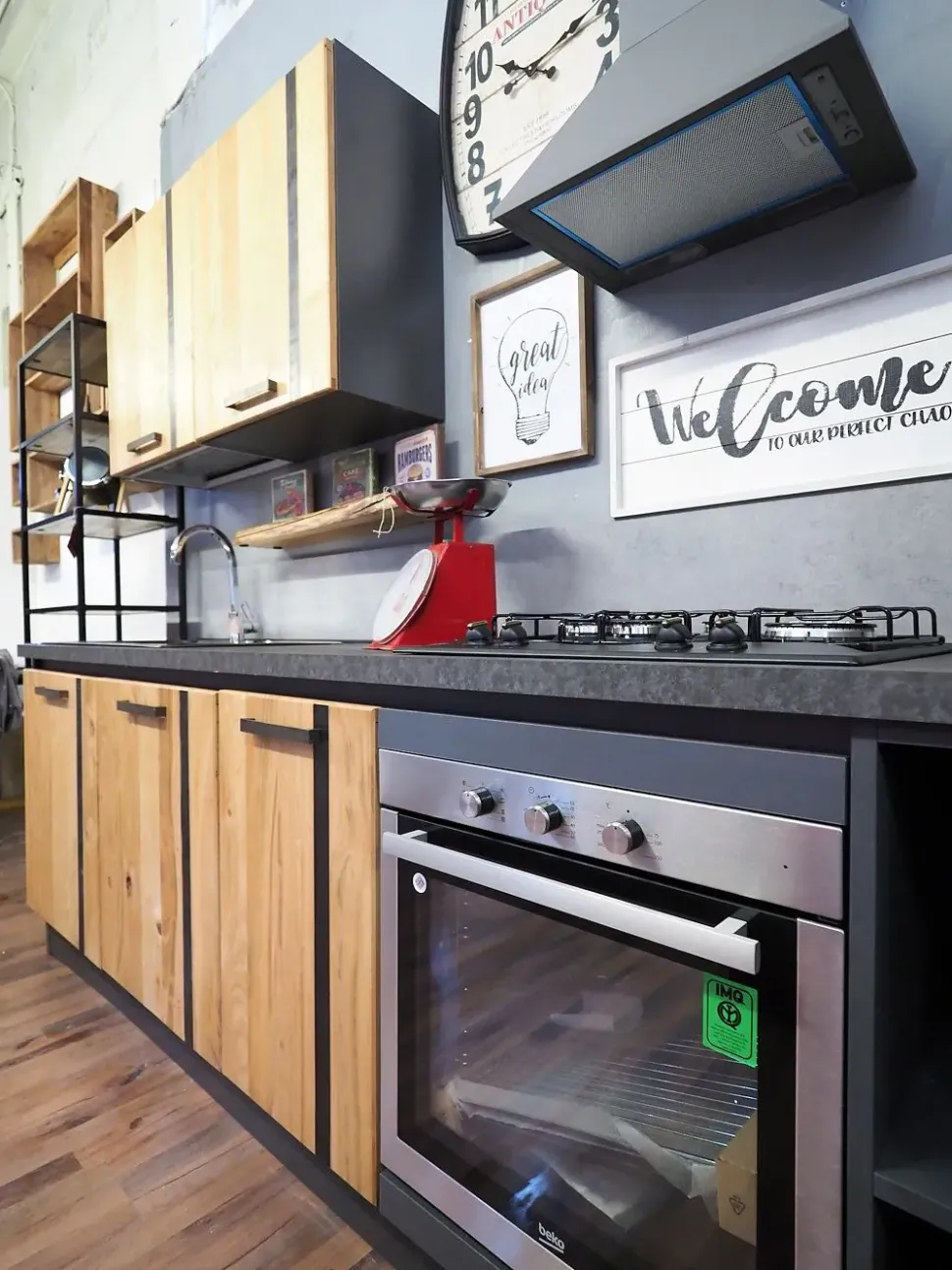 Cucina industrial wave legno offerta Collezione esclusiva è, tra le cucine, la proposta ideale per completare stanze industrial di ogni metratura e forma.