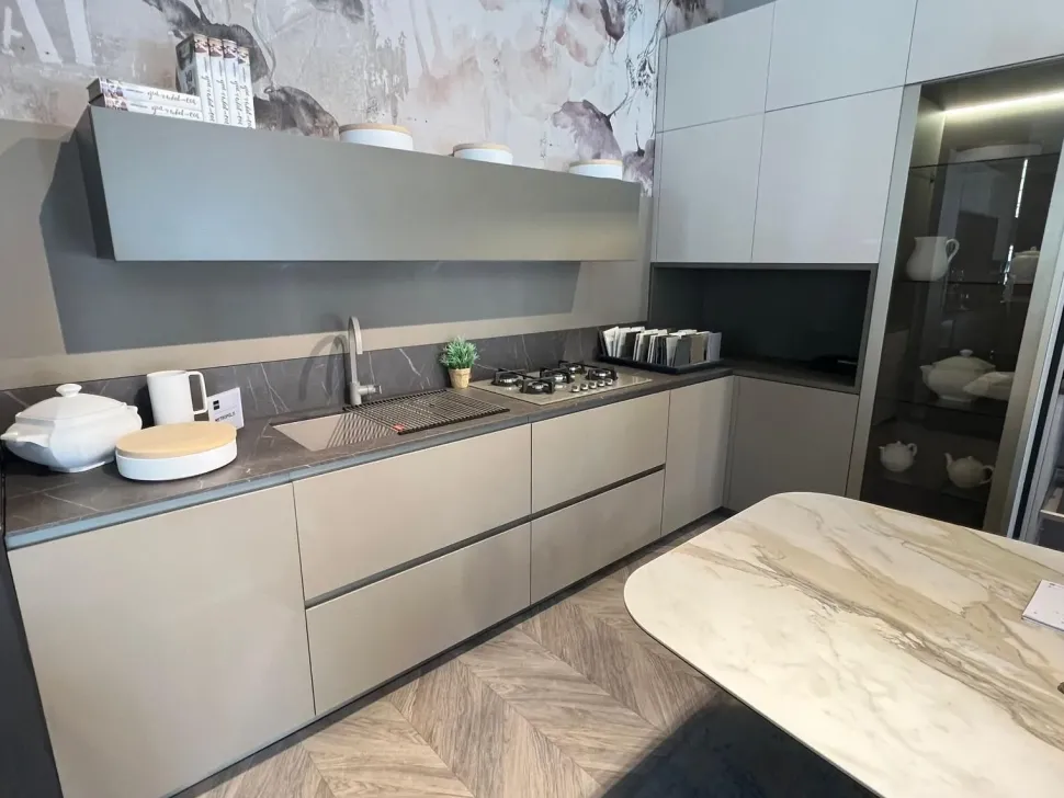 Cucina Stosa – Modello Metropolis L3790x4650 x P61,6 x H2660 Anta in PET Cashmere Opaco Telaio Alluminio SENZA CANTINETTA