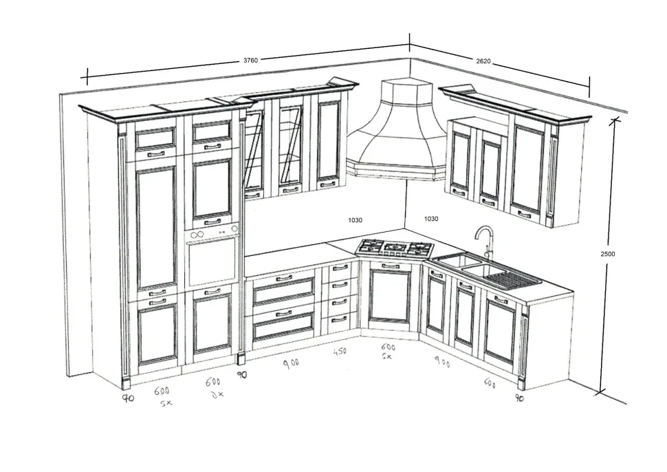 - Disposizione ad angolo: cappa Mimosa inclusa