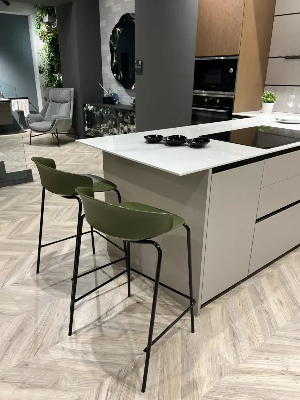 Un ben dosato incontro di stile e design ti garantirà la completa contentezza a progetto ultimato, ad un prezzo esclusivo. Tra le molteplici composizioni arredative che vendiamo, la Cucina Scavolini design con penisola tortora in laminato materico Mira qui visibile è veramente bella e di grande qualità. Con uno sconto del 52% potrai avere una tra le soluzioni più ricercate nel mondo dell’arredamento.