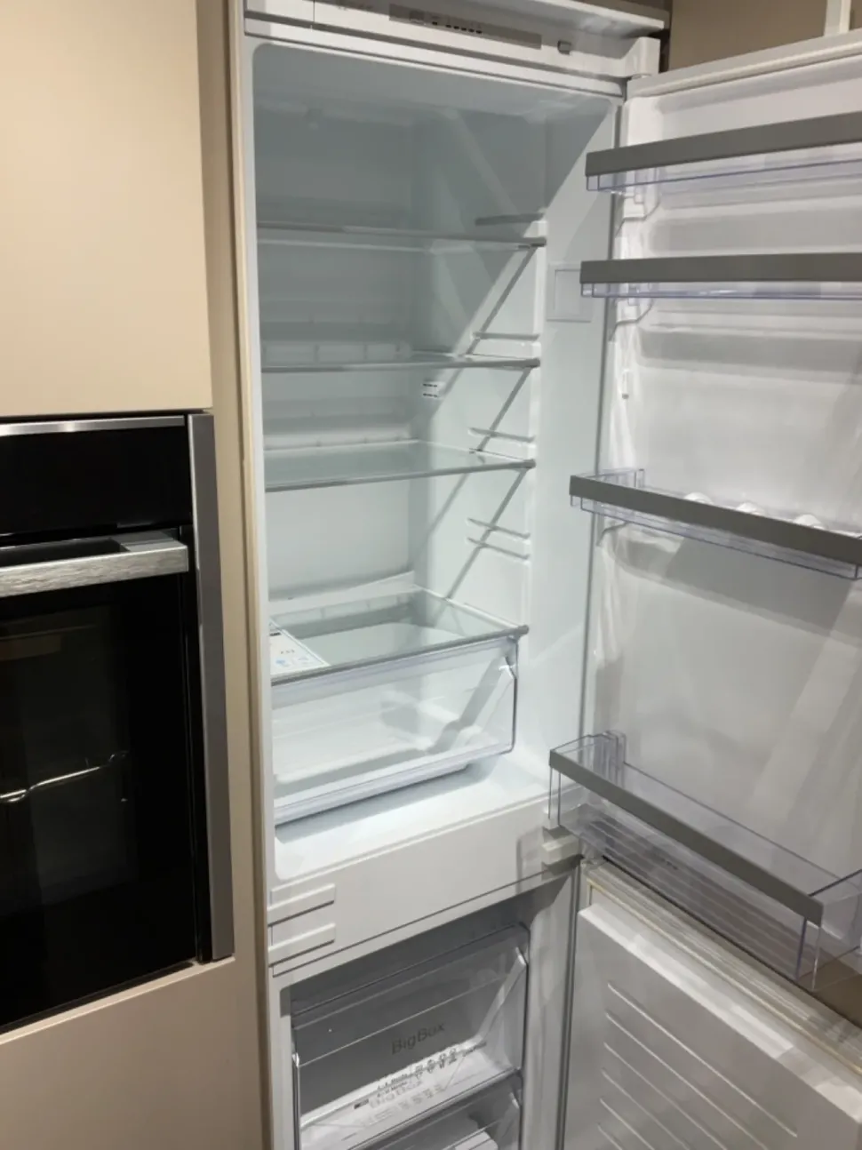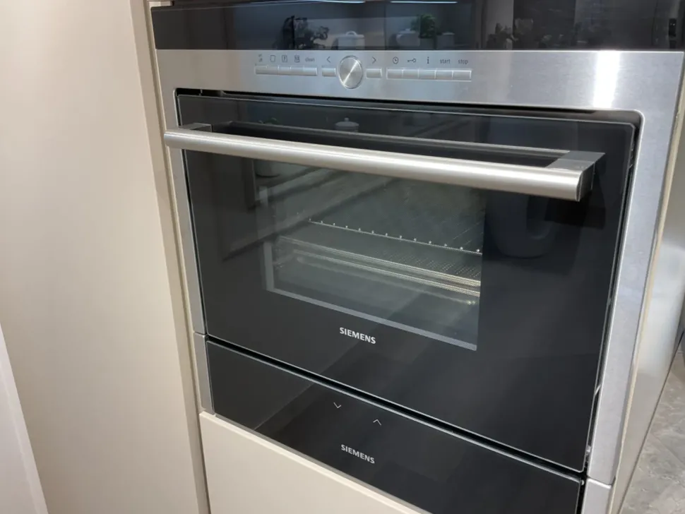 Colonne con ante laccate beige ecrù cm 426×266 di altezza il forno microonde Siemens ha il cassetto scaldavivande