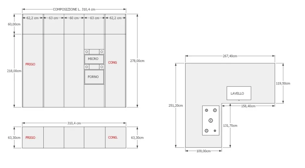 DIMENSIONI ISOLA L.267,40 L.251.20 P.109 P.119 H.91.