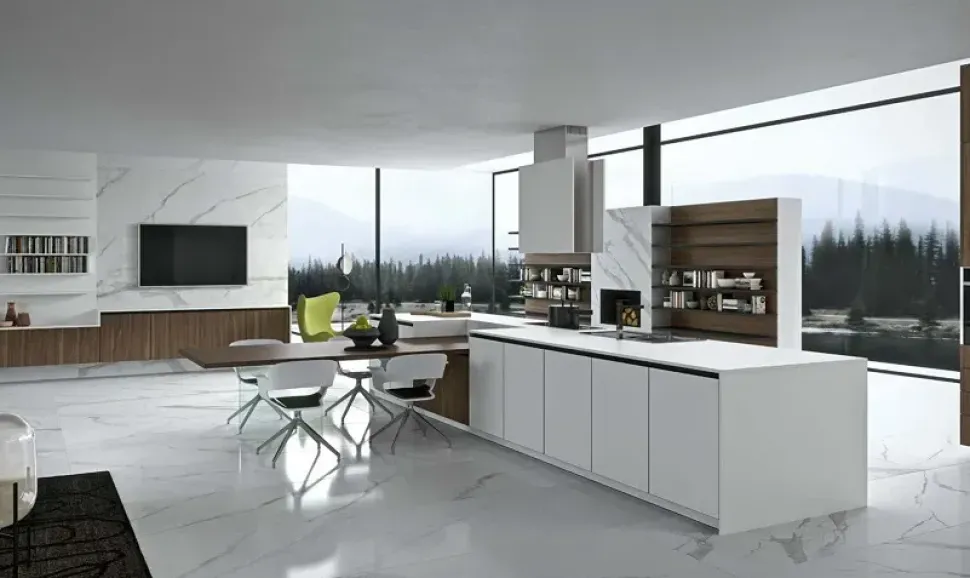 Funzionalità e stile sono gli elementi che caratterizzano la cucina modello Vestimi in vetro, poiché disponibile in materiali durevoli e resistenti nel tempo.