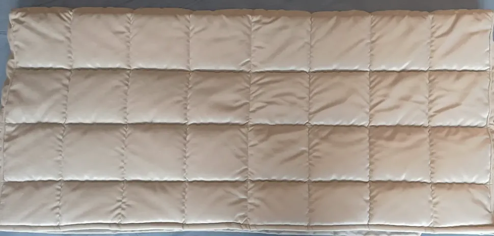Copritestata per letto 1 piazza e mezzo in tessuto a quadrotti colore beige. Completamente imbottito con tessuto effetto velluto. Contattateci per preventivi in altre finiture o misure
