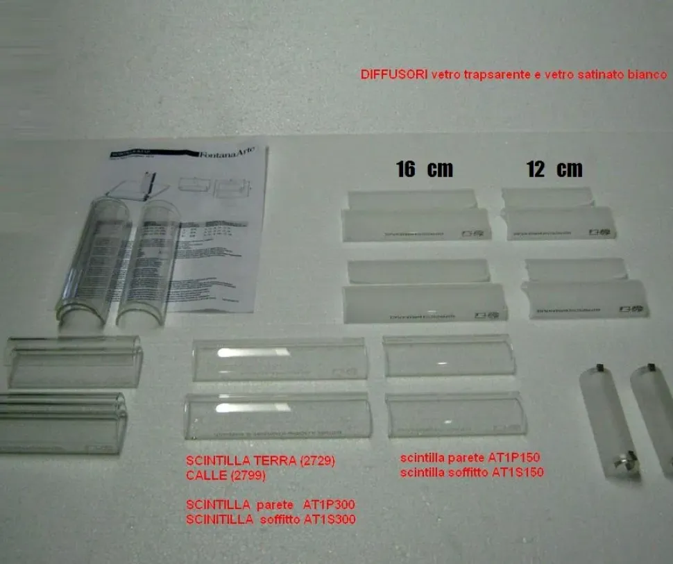 parti di ricambio ,vetri trasparenti Lampade FontanaArte serie scintilla