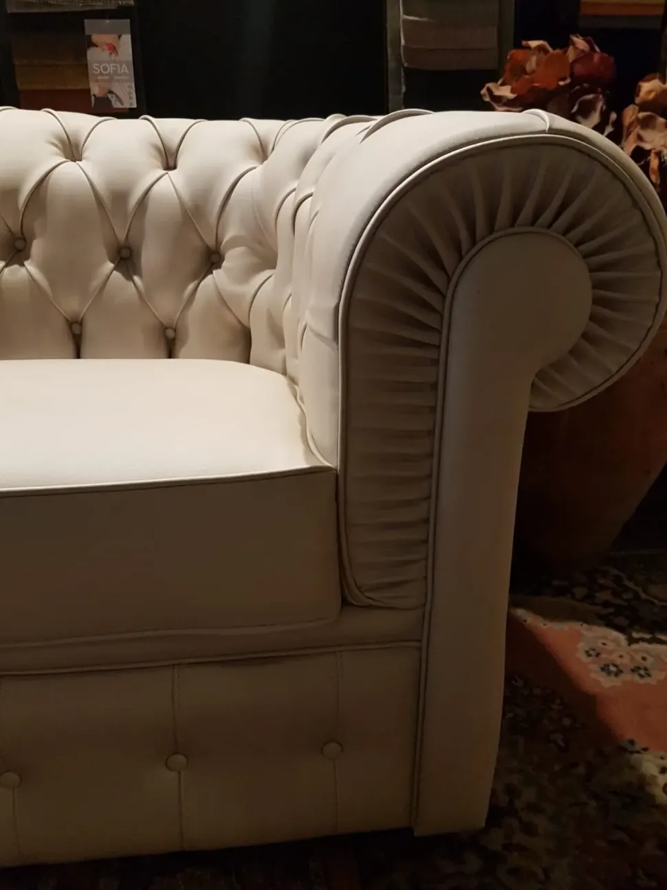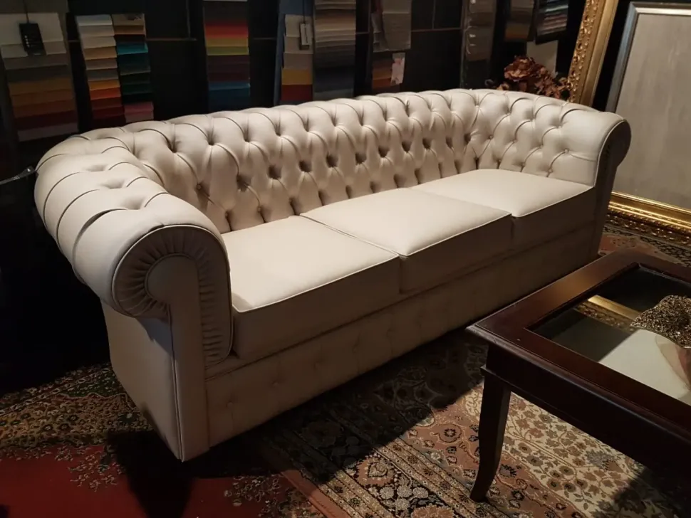 Divano 3 posti capitonnè in ecopelle colore Perla.