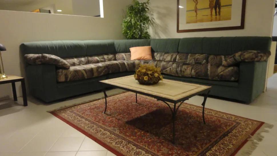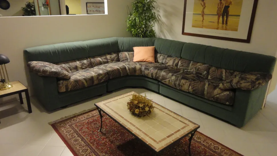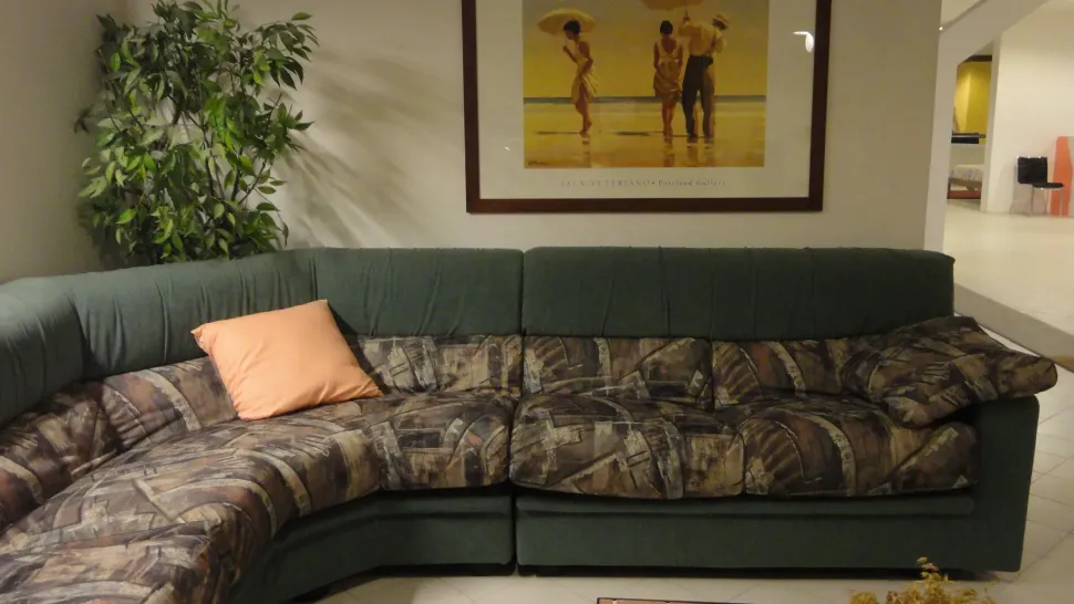 I cuscini dello schienale sono in microfibra nella parte alta ed in tessuto nella parte inferiore.
