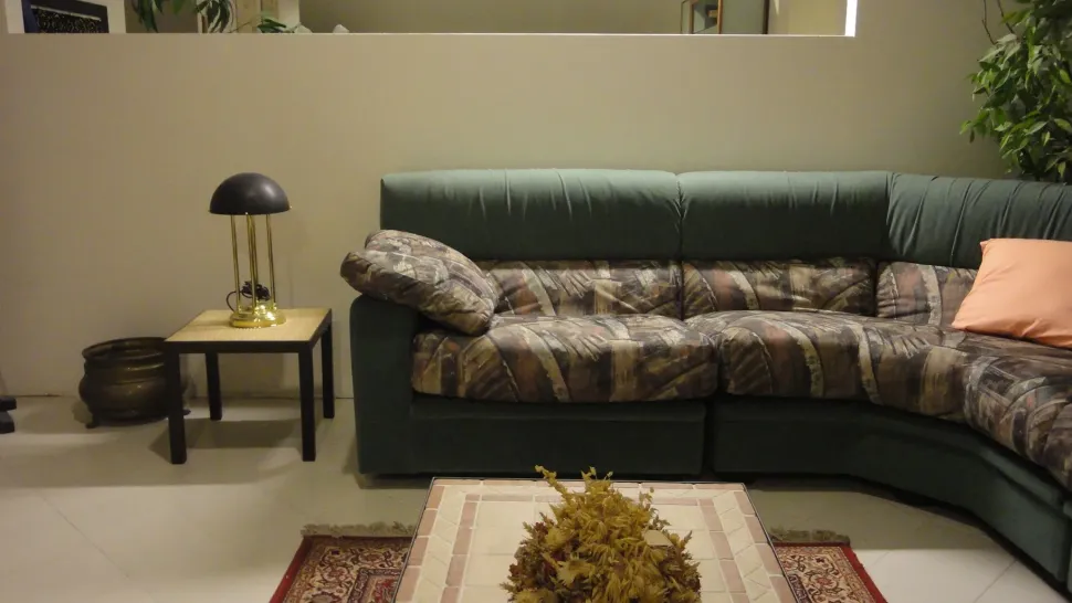 Il rivestimento della struttura è in microfibra in finitura verde .