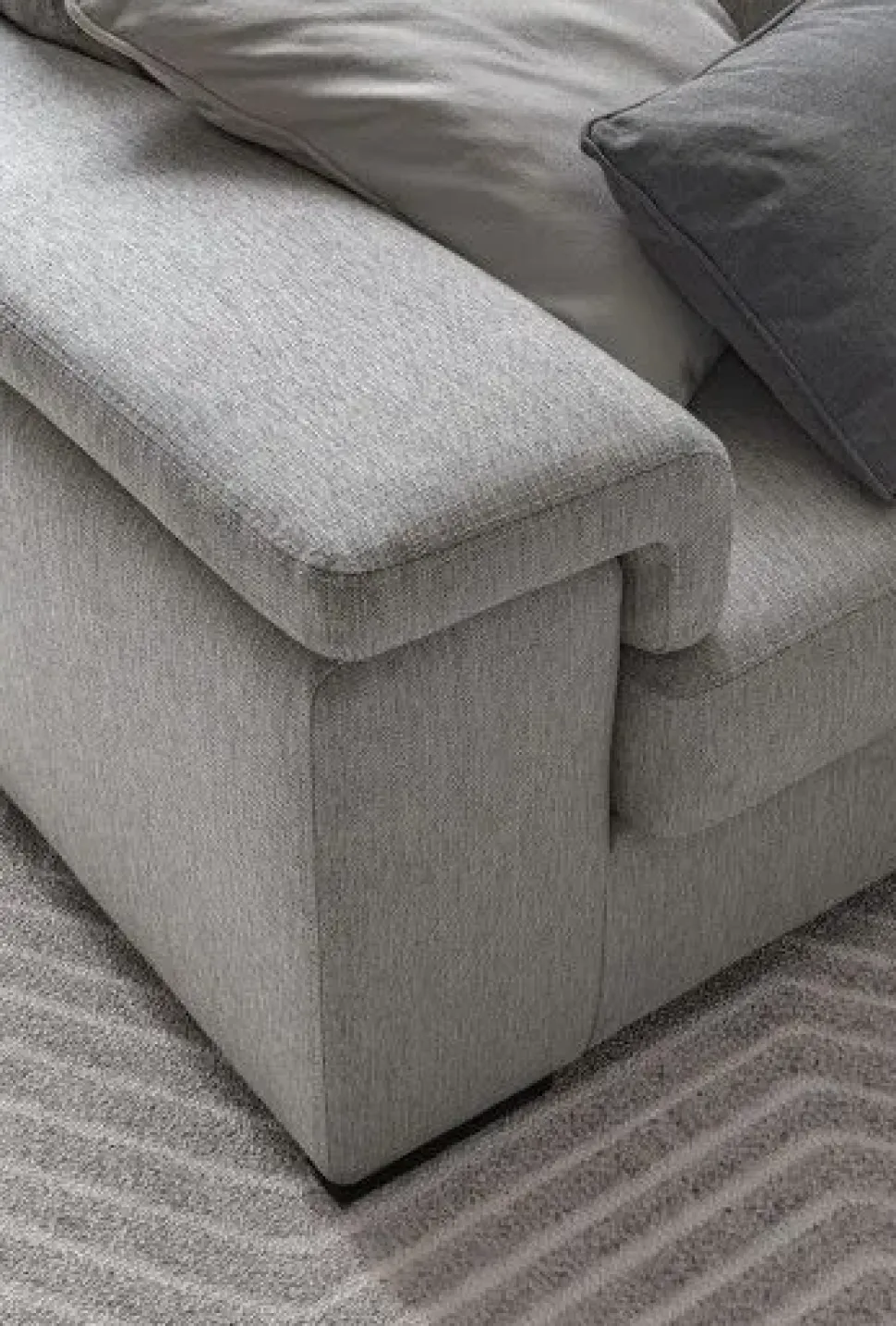 In tessuto o texil completamente sfoderabile (per composizione e lavaggi fare riferimento all’etichetta). In pelle sfoderabili cuscini seduta, schienale e bracciolo. Data l’origine naturale delle pelli impiegate, negli elementi con rivestimento in pelle sono necessarie cuciture aggiuntive rispetto gli elementi con rivestimento in tessuto. Per finitura bicolore (scocca-cuscinatura) +10% dal prezzo di listino della categoria più alta dei rivestimenti utilizzati. Non rifinito a lato. Meccanismo di giunzione con piastre ad incastro.