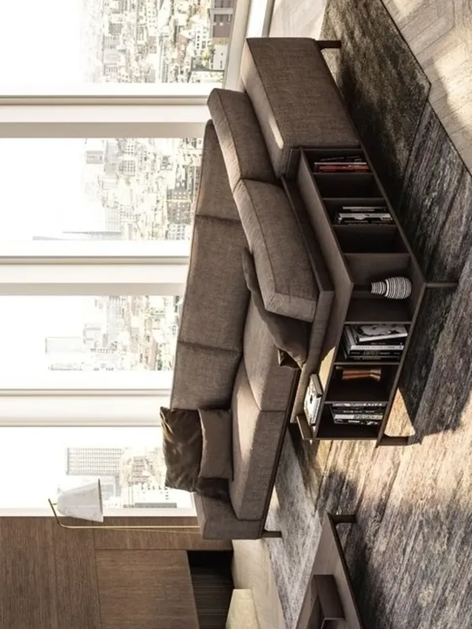I mobili, tra cui altresì gli imbottiti, non devono mai risultare ingombranti, innanzitutto per quanto concerne lo spazio che occupano all’interno dei locali; infatti è fondamentale valutare con attenzione anche le loro misure: il modello di Angolare presente in foto appartiene alla collezione di imbotti della marca di lunghezza che varia da 326 a 350 cm ed è dunque ideale per un interno di diverse volumetrie.