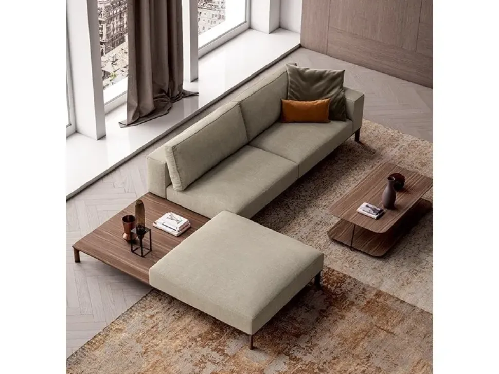 Leonard, divano firmato Doimo Salotti con struttura e basamento in legno, morbide imbottiture e finiture sartoriali. Gli elementi modulari permettono di realizzare composizioni lineari o angolari, a seconda del proprio gusto personale. Personalizzabile non solo grazie a una vasta scelta di rivestimenti in tessuto, microfibra, ecopelle e pelle, ma anche con elementi accessori quali mensole, ripiani e librerie, che si armonizzano alla seduta e allo schienale, è un connubio di comfort e ricerca estetica. TRASPORTO COMPRESO NEL PREZZO. Composizione da 260×108 in Elena 33.