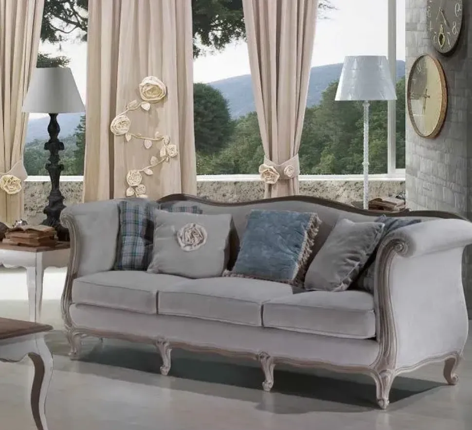- In un living che si rispetti, anche gli imbottiti devono seguire una certa continuità di colore e di stile: il modello qui presente è l’ideale per ultimare al meglio uno spazio in stile provenzale; design unico e materiali pregiati resistenti nel tempo lo rendono una soluzione arredativa di gran classe.